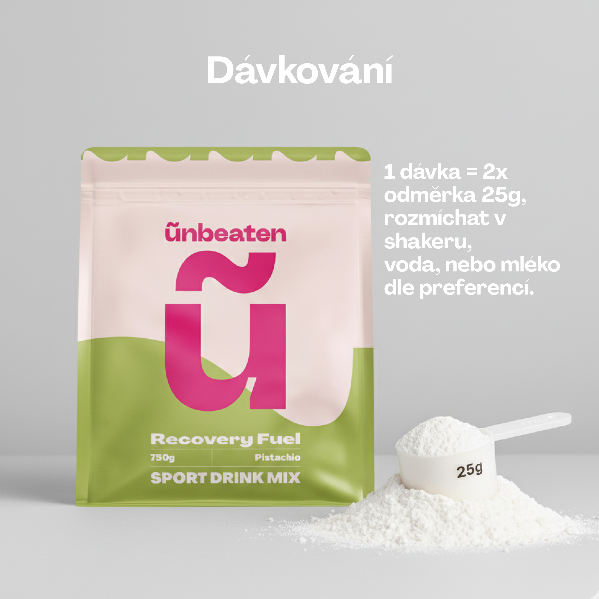 Doplnění energie: cca 25 g sacharidů na dávku pomáhá doplnit glykogen po výkonu.
